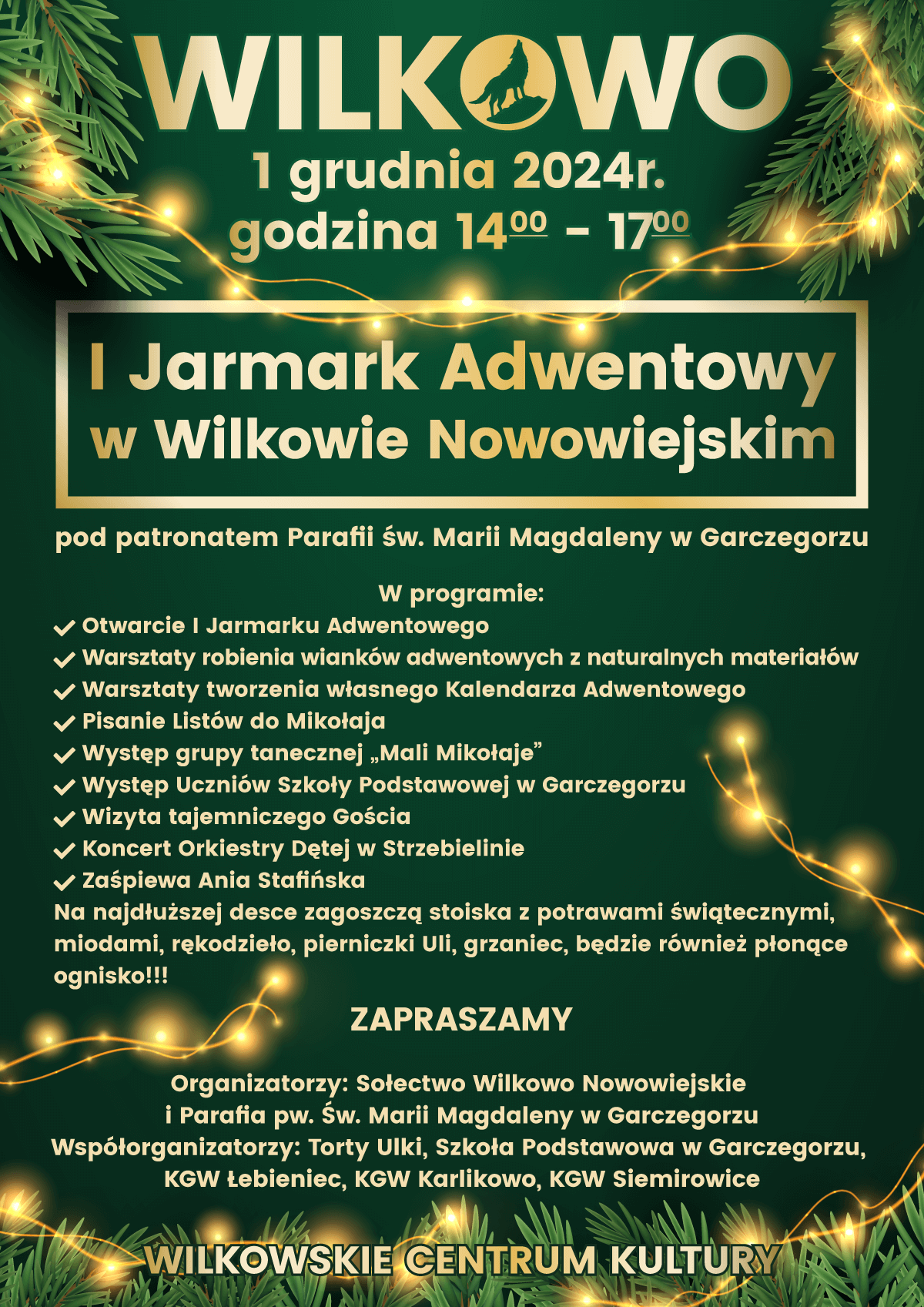 Organizatorzy: Sołectwo Wilkowo Nowowiejskie i Parafia pw. Św. Marii Magdaleny w Garczegorzu