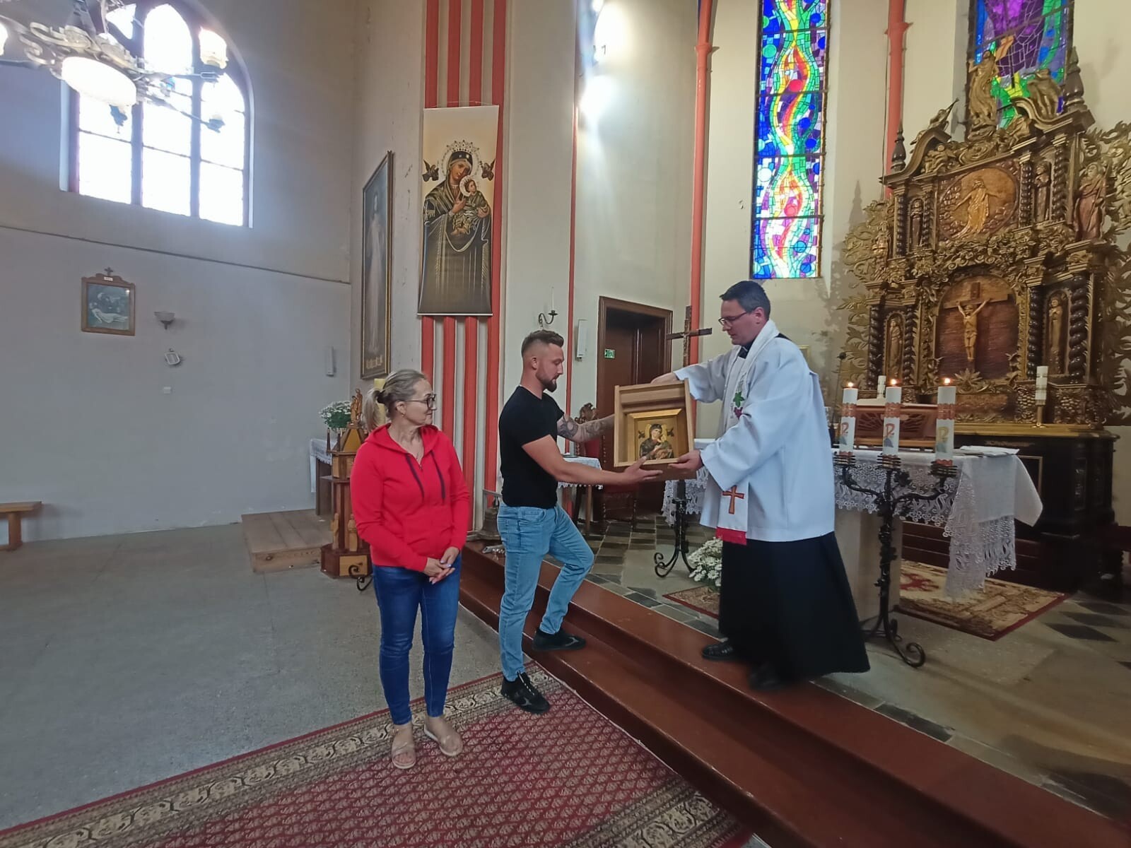 W dniu dzisiejszym, w czwartek 6 czerwca w kościele św. Józefa Oblubieńca w Janowicach odbyło się Nabożeństwo ku czci MBN Pomocy oraz przekazanie obrazu MBN Pomocy Rodzinie Państwa Zamojskich Wiolecie i Władysławowi, którzy rozpoczęli kontynuację peregrynacji obrazu po naszej wspólnocie parafialnej wśród Rodzin tej części naszej Parafii. Obraz przekazał i nabożeństwu przewodniczył ks. Stanisław M. Niech Matka nasza najlepsza błogosławi i obdarza łaskami wszystkie Rodziny, które będą ją gościły.